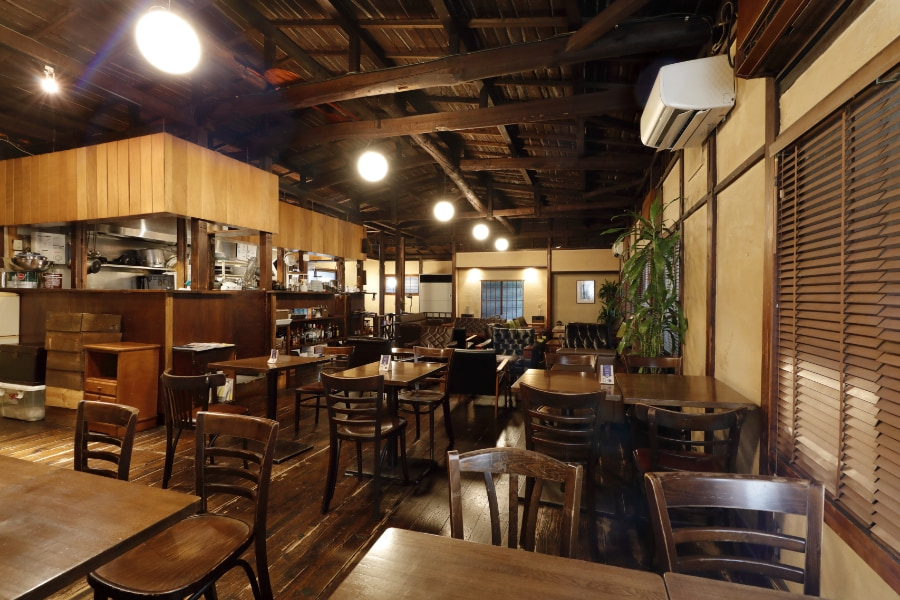 納屋カフェがコンセプトで、素朴で居心地良い雰囲気が広がっています。