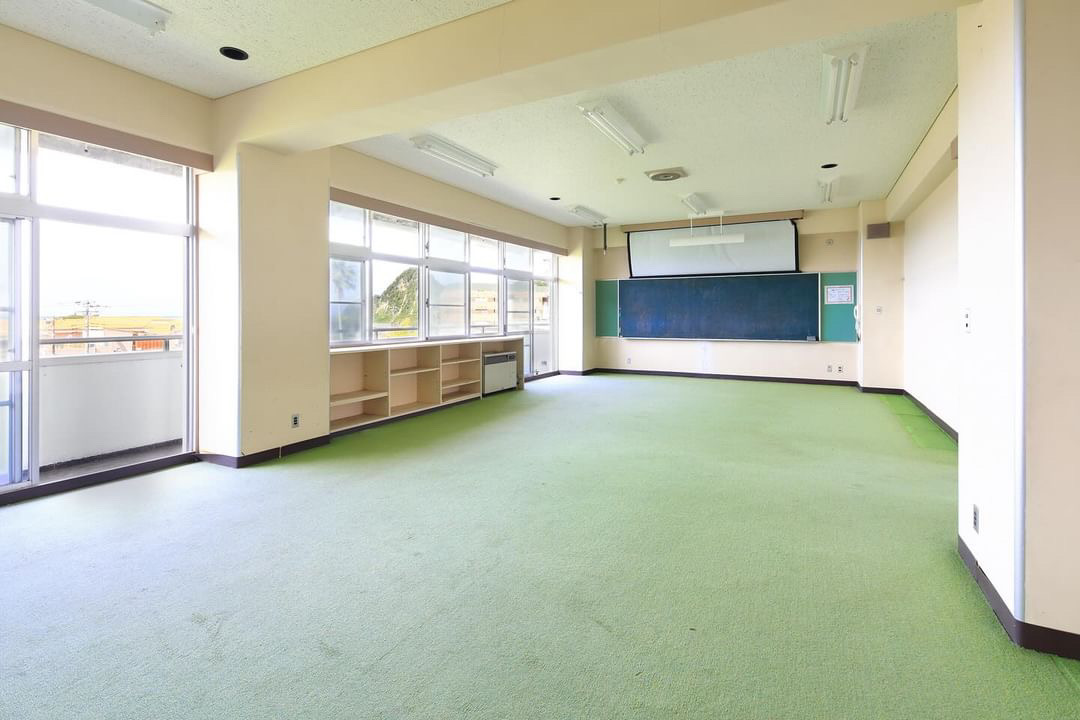 教室や体育館、屋上、芝生の生えた大きな校庭、手洗い場、下駄箱、給食の調理場、廊下などで学校での様々なシチュエーションを撮影いただけます。体育館にはバスケットゴールや演台があるので、体育の授業シーン・全校集会シーンなど様々な演出が可能。3階からは近くの海を一望でき、天気の良い日には地平線の向こう側に富士山を確認することができます。