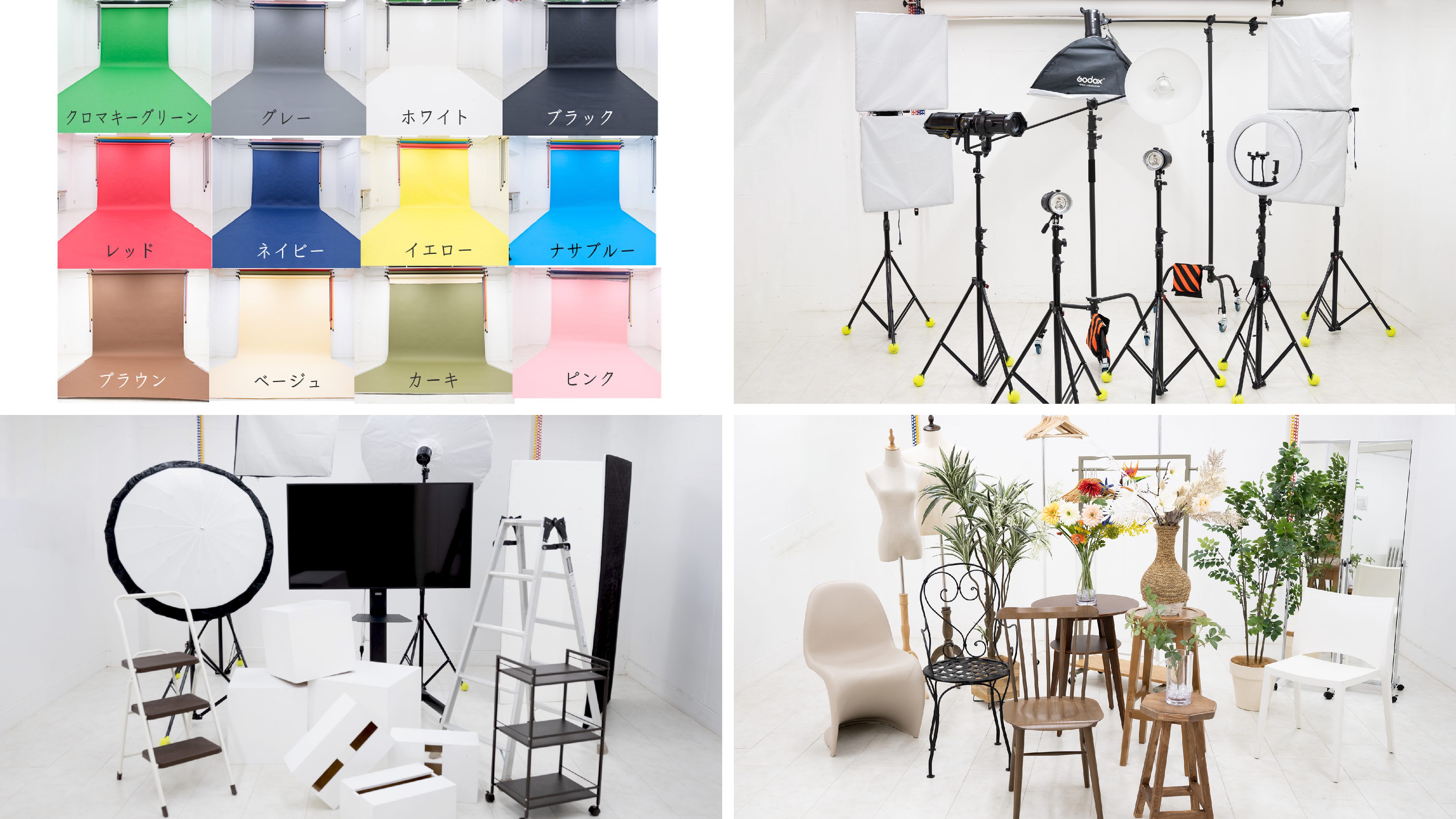【背景紙全12色】【超充実の撮影機材&備品】【メイクスペース】などが全て無料!