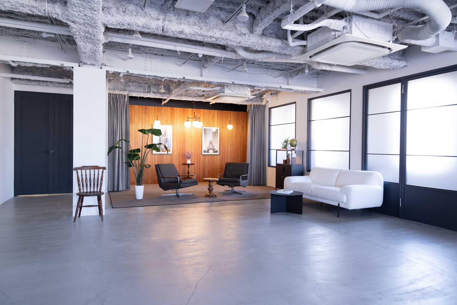 1フロアで総面積300㎡を超え、60名以上収容可能。テイストの異なるスタジオと複数の控室、そして約185㎡の空抜け抜群の屋上を併設。大人数の撮影にも最適。